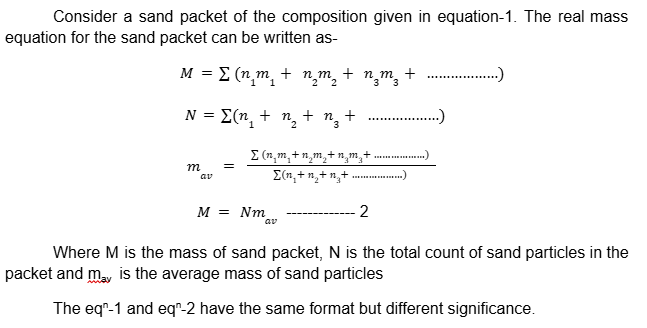 Where M is the mass of a sand packet, m is the mass of each sand particle by axiom/hypothesis and N is the number of sand particles in the packet